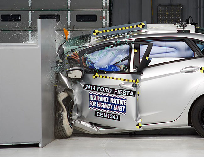 Испытанию, имитирующему столкновение со столбом или деревом (недеформируемый барьер, 25-процентное перекрытие и скорость 64 км/ч), подверглись Chevrolet Spark, FIAT 500, Ford Fiesta, Honda Fit, Hyundai Accent, KIA Rio, Mazda2, Mitsubishi Mirage, Nissan Versa, Toyota Prius C и Toyota Yaris.