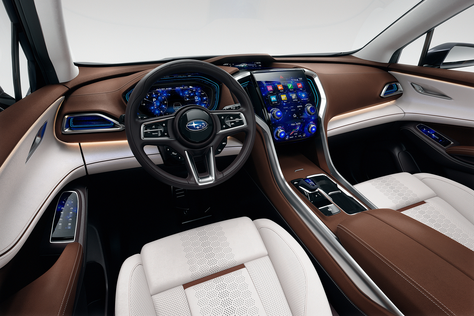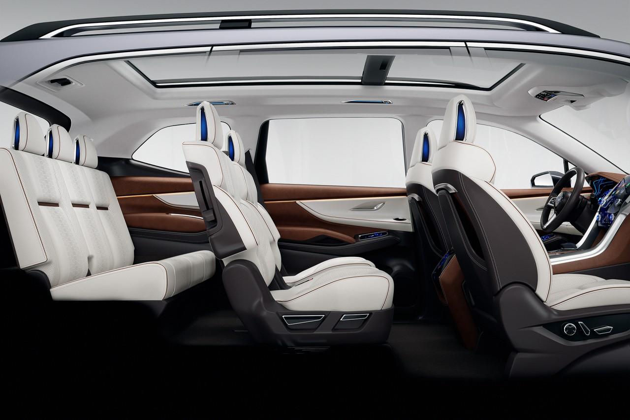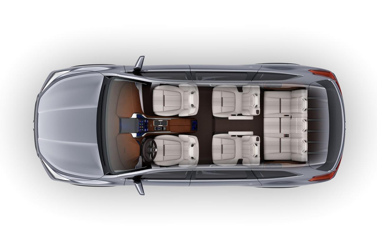 Помимо полностью цифровой приборной панели и огромного сенсорного дисплея на центральной панели, объединяющего мультимедиа и климатическую установку, фишкой машины можно считать трёхместный диван третьего ряда и раздельные кресла во втором ряду. Хотя у серийного кроссовера наверняка будет восьмиместная версия с диваном вместо кресел второго ряда.