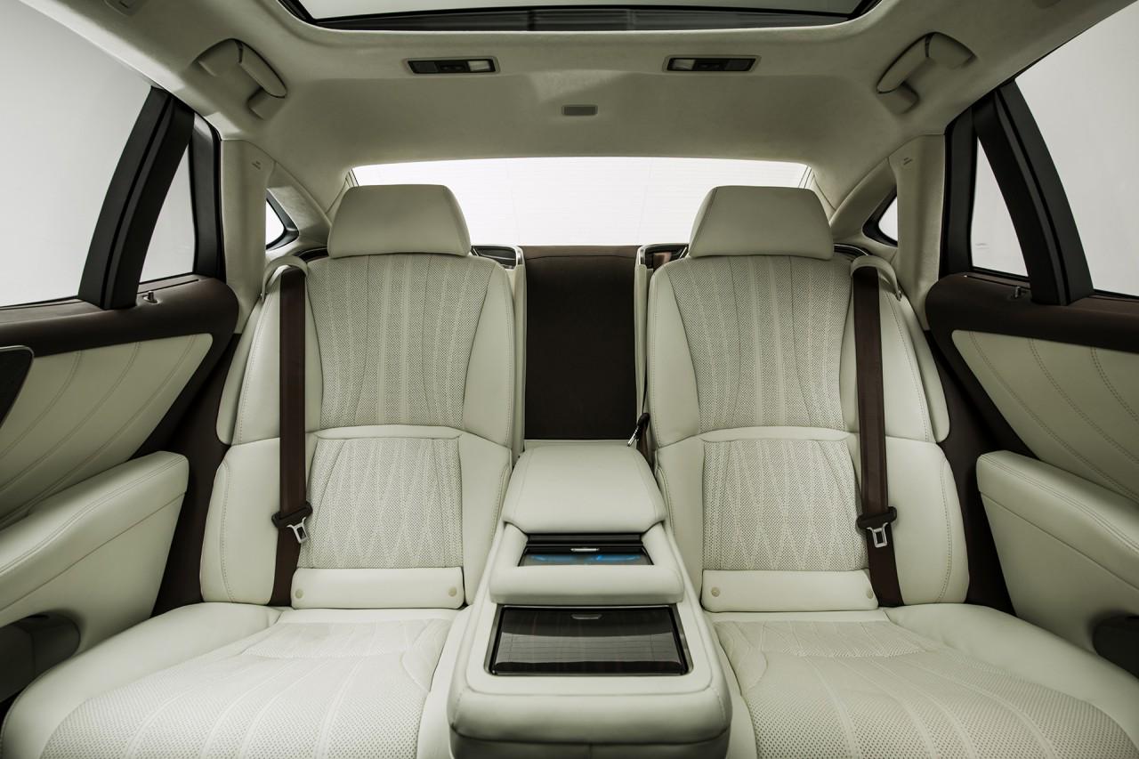 Внешне бросается в глаза дополнительное окошко на задней стойке и тяготеющий к хэтчбекам силуэт. Внутри же машина заметно богаче предшественника — японцы применили концепцию гостеприимства Омотэнаси. Пневмоподвеска способна приподнимать машину для удобства посадки, с этой же целью раскрываются валики боковой поддержки кресел. Что касается самих кресел, то они оснащены подогревом, вентиляцией и функцией массажа, а кресло хозяина (то есть заднее правое) может наклонять спинку на 48 градусов для сна. Это, к слову, больше, чем в «майбахе», но меньше, чем в электромобиле Faraday Future FF 91.