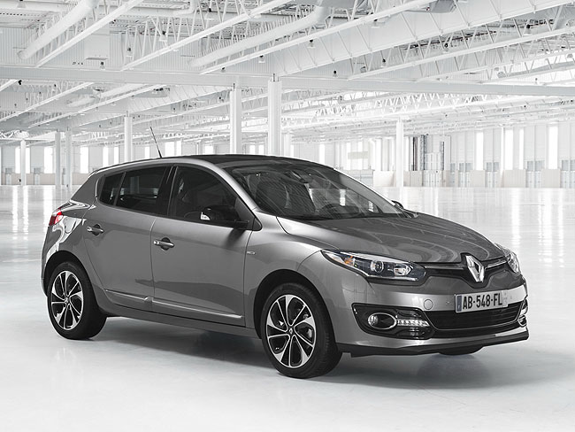 Megane третьего поколения выпускается с 2008 года и за это время претерпел не одно обновление. Последний рестайлинг датируется осенью 2013 года, машина была представлена на Франкфуртском автосалоне в прошлом году. От дорестайлинговой машины хэтчбек отличается исключительно передней частью: новая решётка радиатора с крупной фирменной эмблемой, другая головная оптика и иной передний бампер с дневными ходовыми огнями.