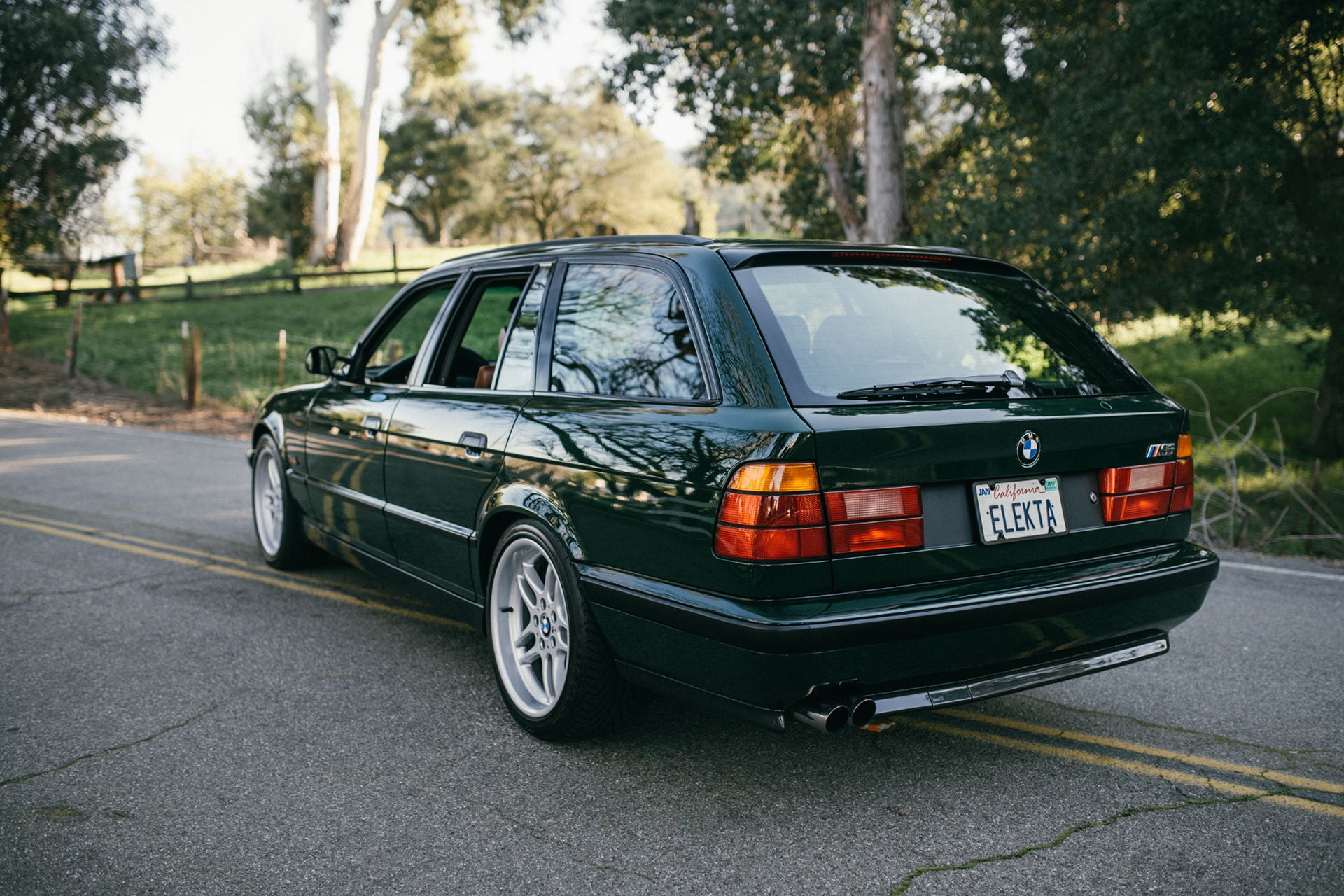 За всю историю BMW модели M5 в кузове универсал предлагались лишь в двух поколениях — E34 и E61. Обе очень редкие. Первых по планете колесит чуть менее 900, а вторых немногим более тысячи. Тем не менее существуют ещё более редкие «вагоны» с шильдиком M5, в частности, речь идёт о M5 Touring Elekta (E34). Во всём мире их лишь двадцать, а таких, как автомобиль, выставленный на продажу в США, только десять. Вторая половина была выкрашена в серебристый цвет, а салон обшит синей кожей.