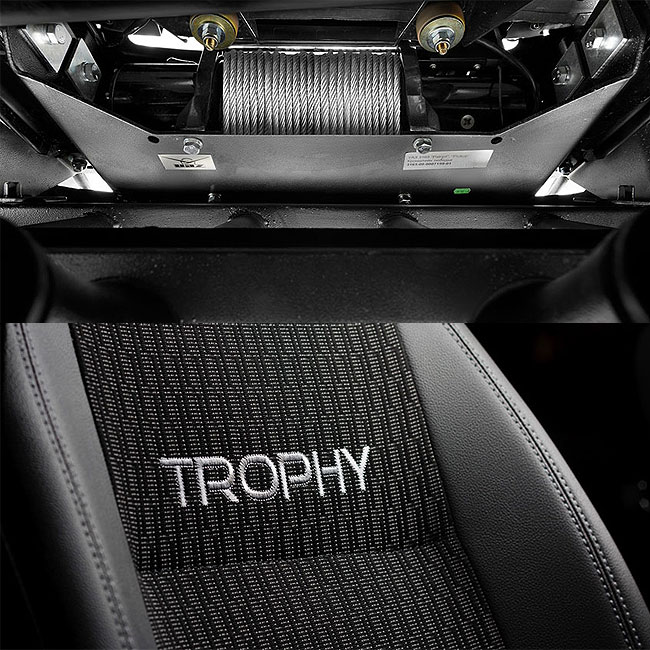 Но ещё больше красит «Патриот» профильная спецверсия Trophy, которую отличает наличие лебёдки SuperWinch с тяговым усилием 3 850 кг, защиты КПП и раздатки, а также трубчатой защиты рулевых тяг. Стоимость такого автомобиля — $19 800.