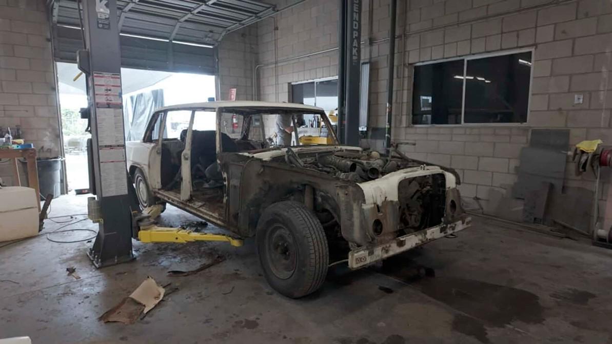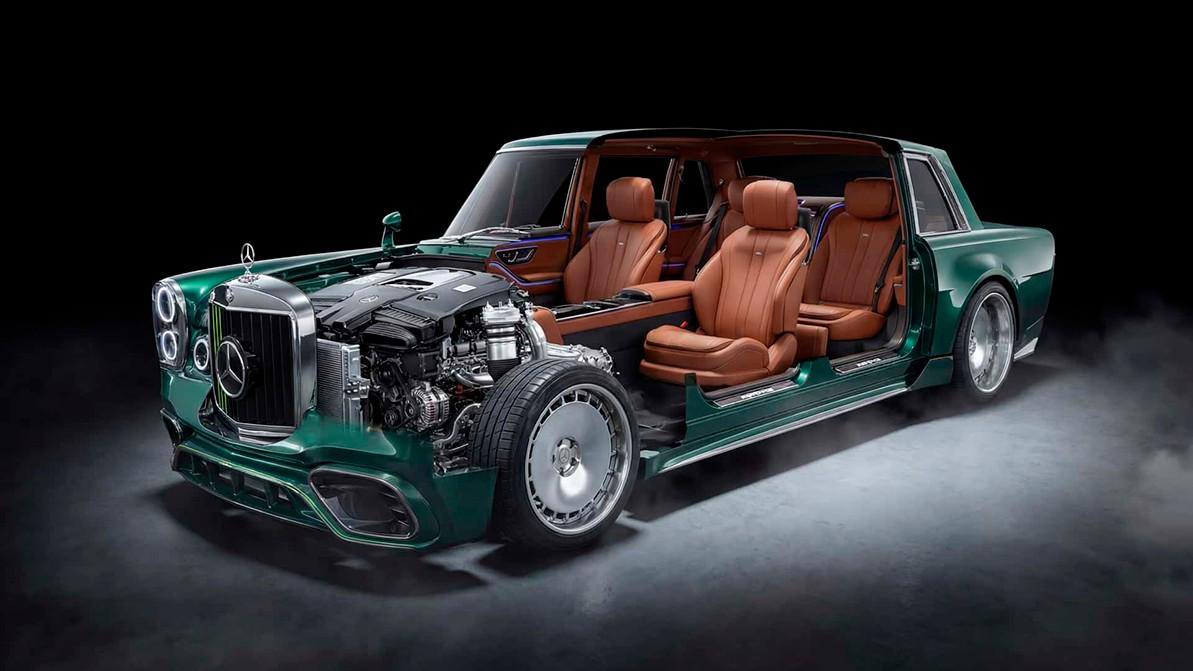 Выбор донора был обусловлен совпадением размеров колёсной базы W100 и V223, что позволило произвести полноценную «свадьбу» с установкой винтажного кузова на новое шасси с адаптивной подвеской и силовой установкой в составе
