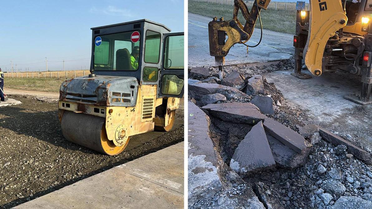 В ходе ремонтных мероприятий произведён демонтаж повреждённого цементобетонного покрытия объёмом 26 м³, устройство верхнего слоя основания из щебёночно-песчаной смеси (ЩПС) объёмом 20 м³, а также укладка нового покрытия из горячей асфальтобетонной смеси площадью 90 м², сообщили в НК «Казавтожол».