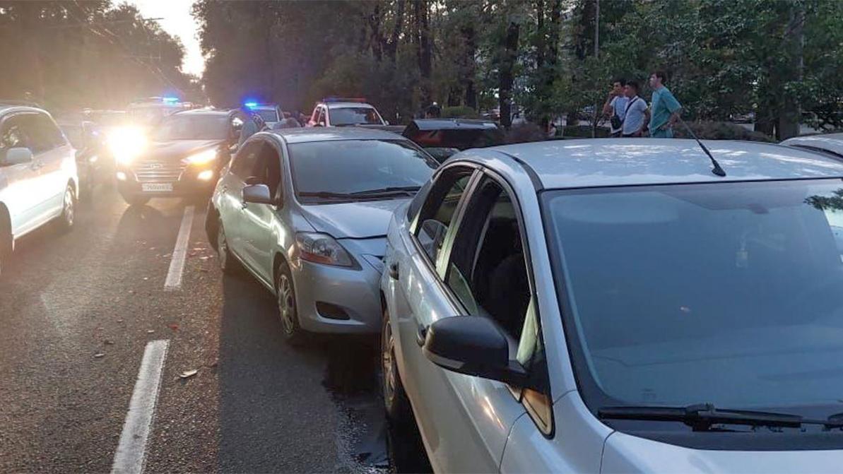 Вечером того же дня на проспекте Абая, близ пересечения с улицей Ауэзова, произошло массовое ДТП. Его участниками стали пять автомобилей. По информации портала Sputnik.kz, Audi A6 влетел в машины, ожидавшие разрешающего сигнала светофора.