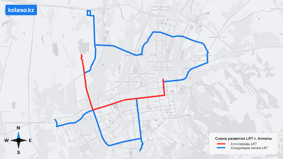 В документе, опубликованном 22 декабря, указывается, что первую скоростную трамвайную линию (LRT) в южной столице планируется пустить из индустриальной зоны в Алатауском районе по улице Момышулы, по Толе би и по Толе би до Абылай хана и вокзала Алматы-2. А следующие — на восток по Райымбека, через Малую Станицу до Бесагаша, а оттуда по полукольцу вдоль улицы Хмельницкого через Турксибский и Алатауский районы вывести в сторону