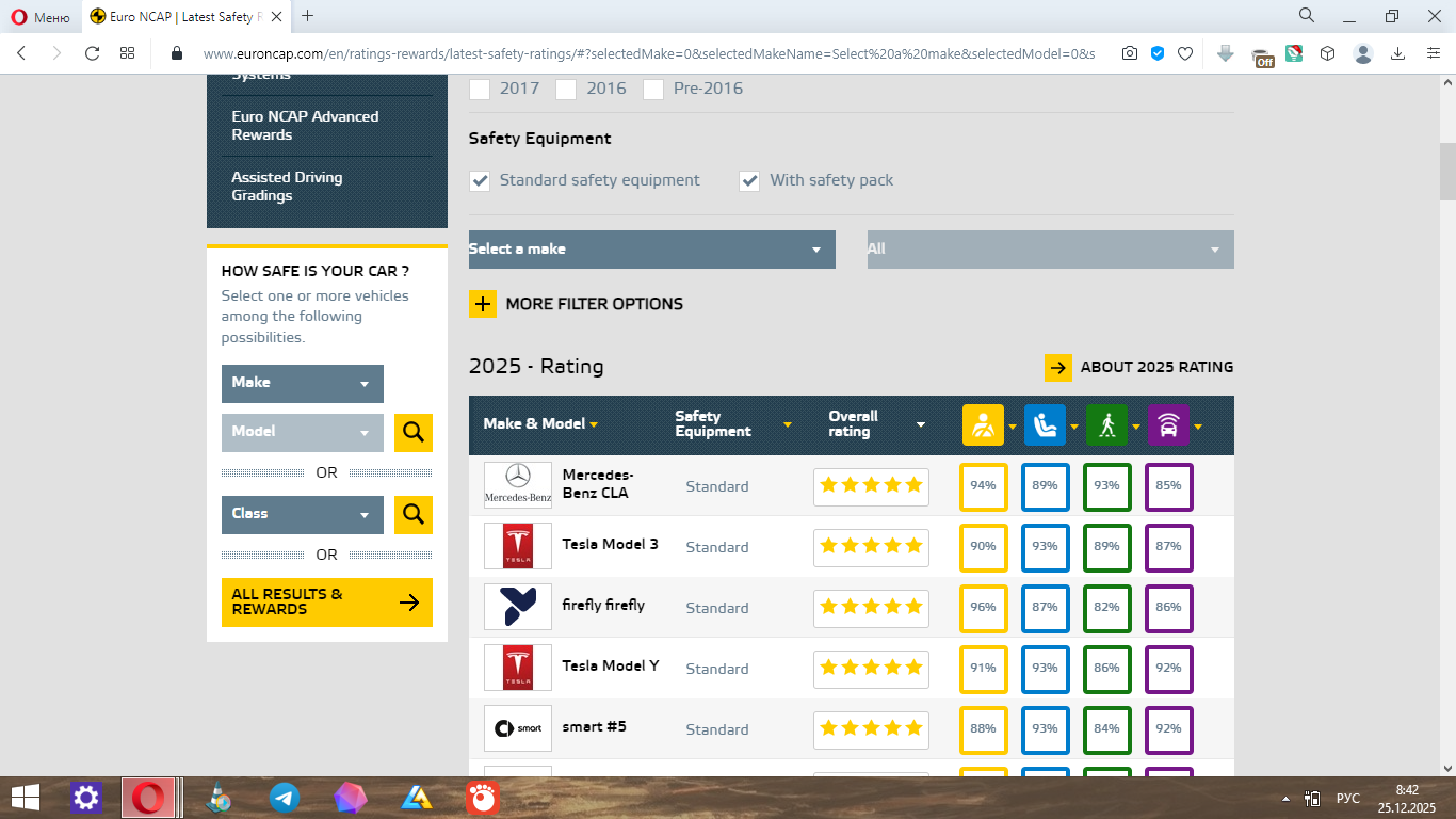 "…Никакой Теслы и Mercedes-Benz CLA тут нет…"- не позорьтесь, учитесь использовать первоисточник: https://www.euroncap.com/en/ratings-rewards/latest-safety-ratings/#?selectedMake=0&selectedMakeName=Select%20a%20make&selectedModel=0&selectedStar=&includeFullSafetyPackage=true&includeStandardSafetyPackage=true&selectedModelName=All&selectedProtocols=54301&selectedClasses=1202,1199,1201,1196,1205,1203,1198,1179,40250,1197,1204,1180,34736,44997,54278,54293&allClasses=true&allProtocols=false&allDriverAssistanceTechnologies=false&selectedDriverAssistanceTechnologies=&thirdRowFitment=false https://uploads.disquscdn.com/images/155d3c236bb9dd2c3e0cbd00d3ce8d6852a20167100a176cac7b842859c1e9ee.png