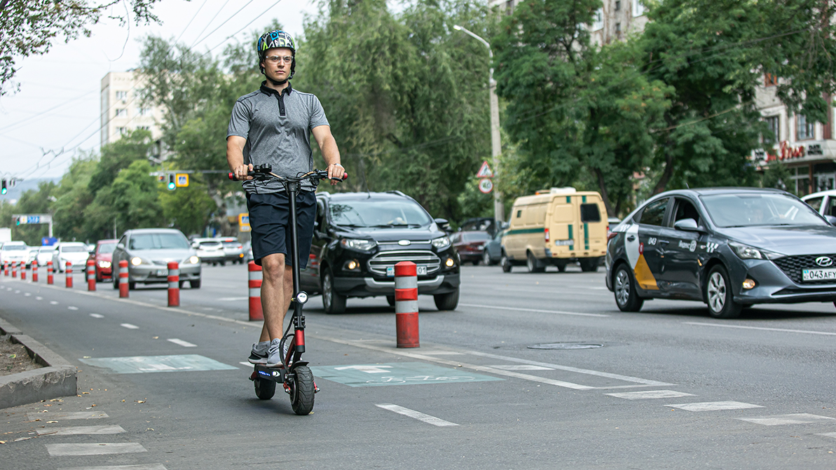 В Казахстане же правила для электросамокатов относительно либеральные. В ПДД РК прописано, что «водители электрических самокатов двигаются по велосипедной дорожке, велосипедной полосе движения. А при их отсутствии: