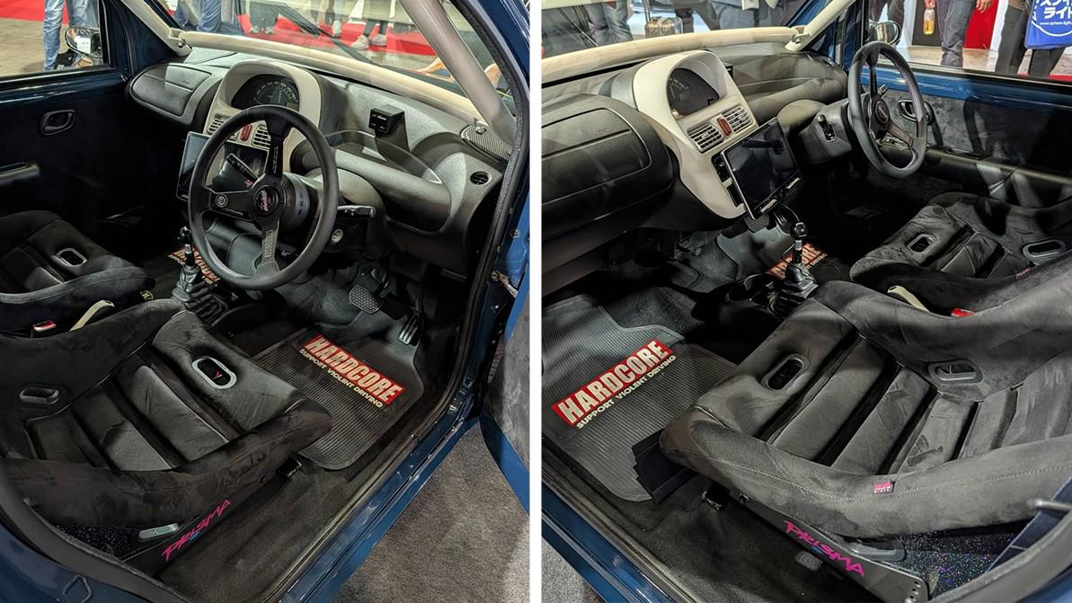 Визуально от Copen сохранились только двери, зеркала, лобовик и съёмная жёсткая крыша. Всё остальное было либо заменено, либо перекроено, в том числе за счёт напечатанного на 3D-принтере кузовного обвеса. Фары и задние фонари пришлось взять у настоящей «Супры», вместе с её же бамперами, с неизбежной подрезкой под иные размеры.