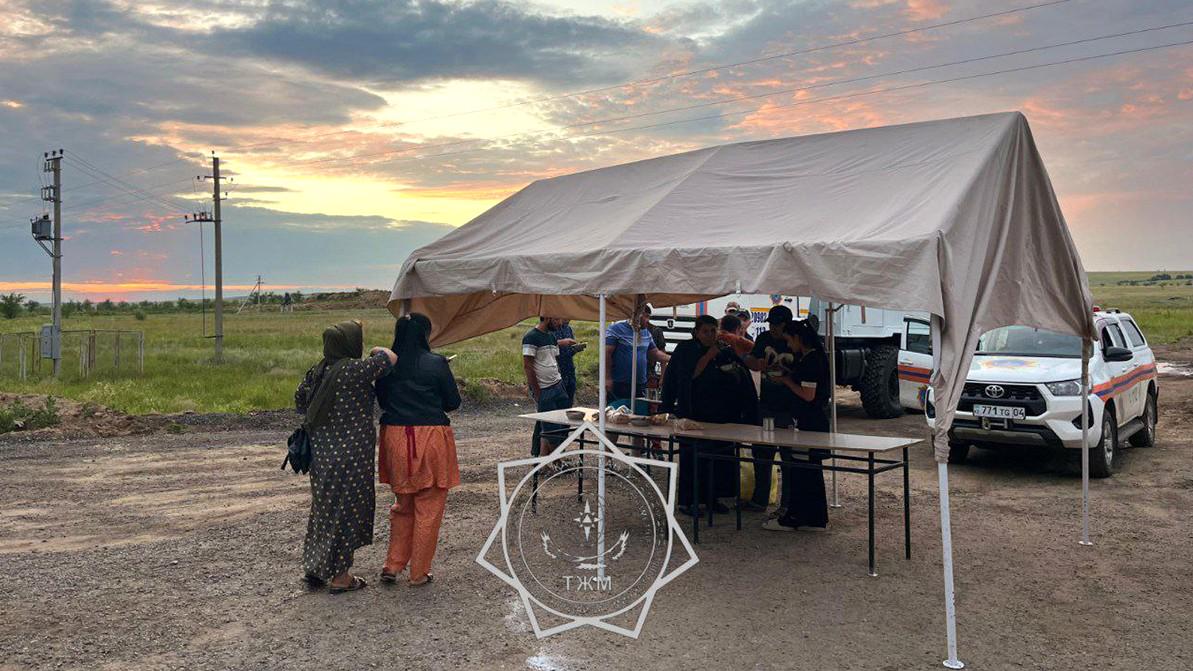 Выручать граждан на пограничном посту «Жайсан» пришлось сотрудникам МЧС РК: 30 июня спасатели организовали для водителей и пассажиров горячее питание и доставку воды.