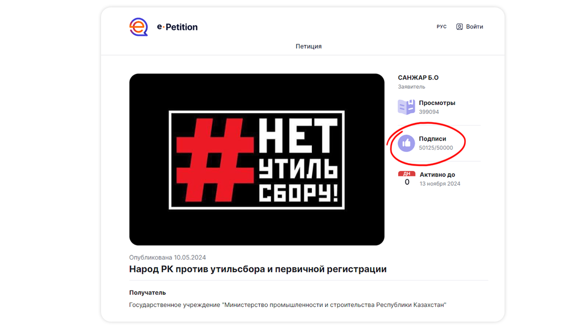 К слову, петиция за отмену утильсбора и сбора за первичку, размещённая на сайте eOtinish, набрала уже более 50 тысяч подписей. И этого достаточно, для того чтобы массовое обращение граждан рассмотрели в правительстве.