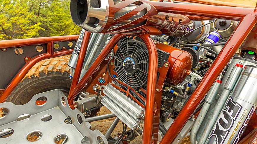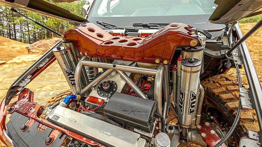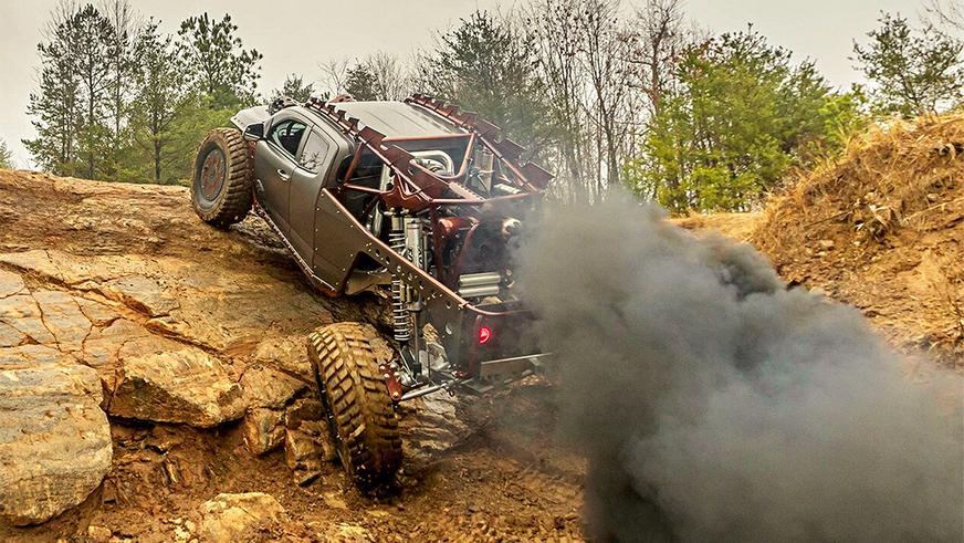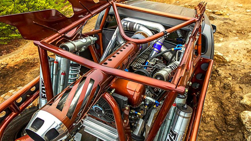 Детище ателье Fab Fours из Ланкастера, штат Южная Каролина, было построено несколько лет назад, блеснув своими возможностями на SEMA’2016, но до сих пор является объектом притяжения как для профильных СМИ, так и для многочисленных автоблогеров. То, что когда-то было пикапом Chevrolet Colorado образца 2015 модельного года, усилиями опытных специалистов переродилось в монстра под названием Kymera («Химера») со стальным трубчатым скелетом внутри, приводимого в движение 5.9-литровым дизелем Cummins от моделей Ram, чья отдача за счёт установки двух турбокомпрессоров была доведена до 650 л. с.