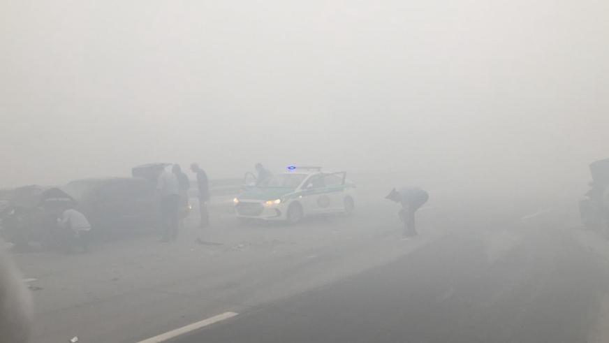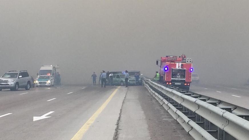 Инцидент произошёл сегодня, 10 июня, на 34-м километре скоростного автобана. В результате пожара, начавшегося на свалке мусора в районе 15:00, дымом затянуло несколько километров трассы. Как сообщила пресс-служба АО «НК «QazAvtoJol», из-за плохой видимости столкнулись 8 машин, в больницу попали три человека. Один из них — до сих пор в тяжёлом состоянии. На место прибыли сотрудники противопожарной службы, дорожной полиции и скорой медицинской помощи.