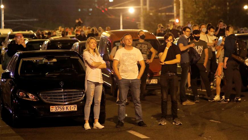 В первые два дня протестов, 9-10 августа, жители Минска своими машинами намеренно преградили движение грузовиков внутренних войск к Пушкинской площади, где происходили столкновения силовиков и демонстрантов. При этом минчане пропускали кареты скорой помощи. Многие автомобилисты в знак поддержки сигналили клаксонами, а пассажиры размахивали руками и бело-красно-белыми флагами, используемыми оппозицией.