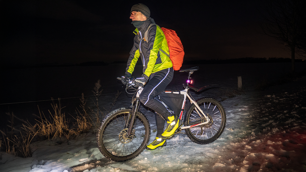 Единственное, где упоминается что-либо отражающее свет и надеваемое на тело, — статья 171 ПДД РК и статья 57 Закона РК «О дорожном движении», запрещающие водителям электросамокатов и велосипедистам «передвигаться в тёмное время суток по проезжей части дороги без светоотражающего предмета, соответствующего требованиям, определённым правилами дорожного движения, обеспечивающего видимость водителям других транспортных средств».