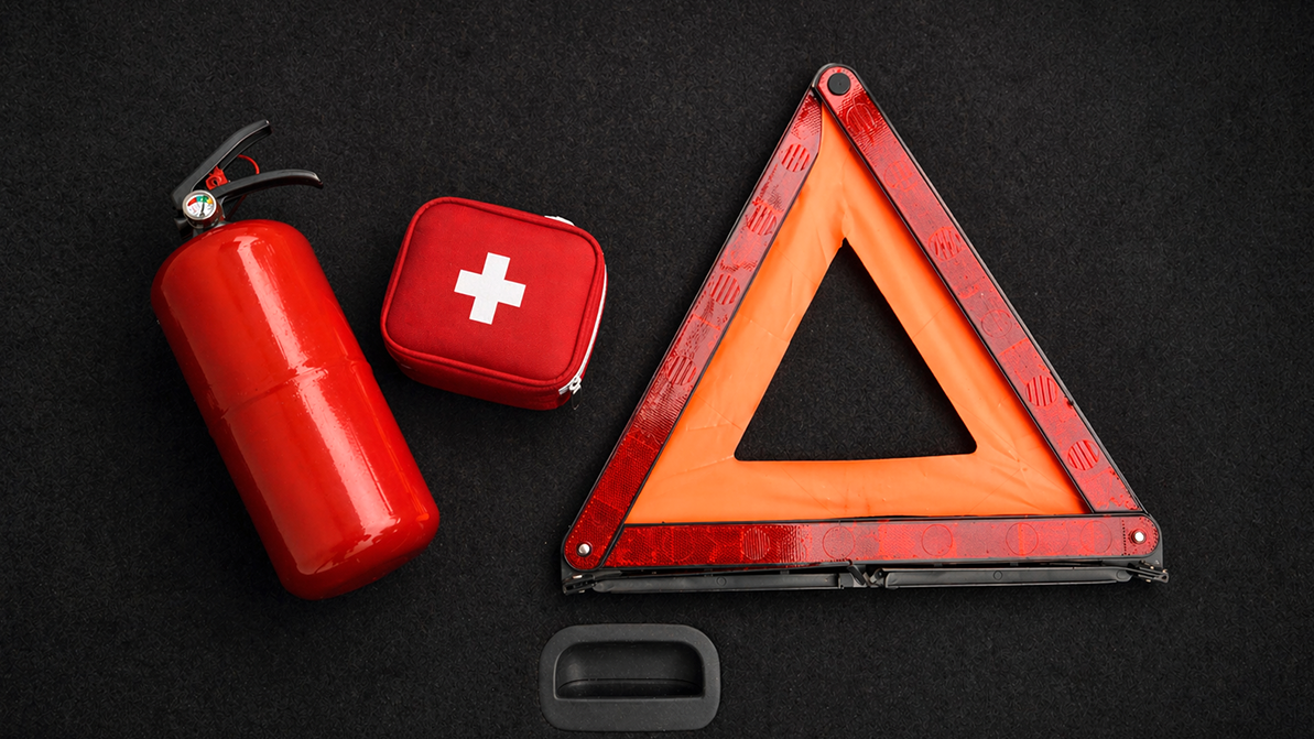 В ПДД РК, что именно водитель обязан иметь в автомобиле, напрямую не указывается. Но в приложении к правилам, в Перечне, при которых запрещается эксплуатация транспортных средств, говорится, что передвигаться по дорогам общего пользования нельзя, если на автобусе, легковом и грузовом автомобиле или колёсных тракторах отсутствует медицинская аптечка, огнетушитель, знак аварийной остановки (мигающий красный фонарь). А на мотоциклах с боковым прицепом — аптечка и знак аварийной остановки (фонарь).