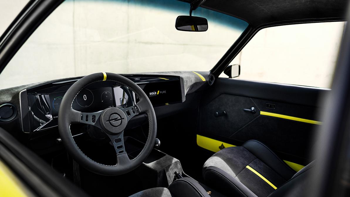 Салон «электромода» полностью новый, с внушительной горизонтальной цифровой панелью, объединившей возможности приборной доски и мультимедийного экрана. Стилистика интерьера не изобилует излишествами, чтобы не отвлекать человека за рулём от процесса вождения. В серию Manta GSe Elektromod, разумеется, не пойдёт, оставшись единичным экземпляром для истории.