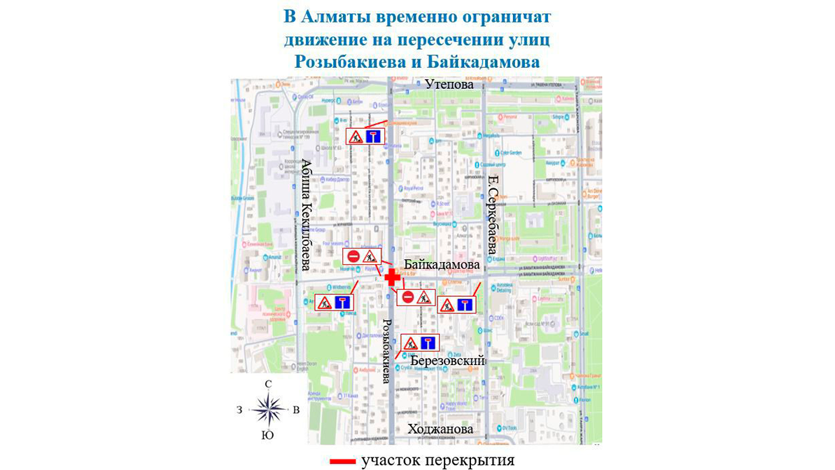 Для алматинских водителей и гостей города подготовили ещё один пробочный отрезок на ближайшие дни. Согласно сообщению «Алматинских тепловых сетей», в Бостандыкском районе будет ограничено движение на пересечении Розыбакиева и Байкадамова. Закроют перекрёсток с 16 и до 27 августа для реконструкции теплотрассы.