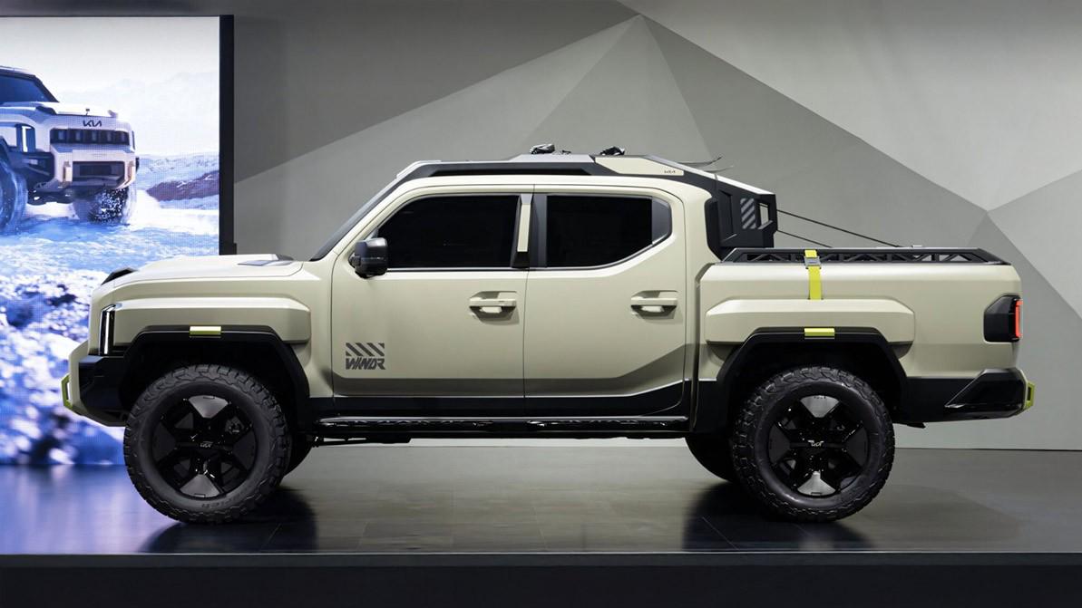 На концепте Kia решила избавиться от одного из самых спорных дизайнерских решений — чёрных накладок на крылья. Теперь они окрашены в цвет кузова, как и детали более мощного переднего бампера. В него встроена лебёдка и крупные буксировочные проушины, подчёркнутые лаймовыми акцентами.