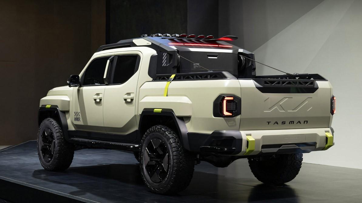 Доработан капот, а по кузову появились дополнительные усилители. По сути, Tasman обзавёлся наружным экзоскелетом, который охватывает и кабину, и грузовую платформу. Насколько можно судить по фото, в него интегрирован размещённый в кузове ящик для хранения мелочей.