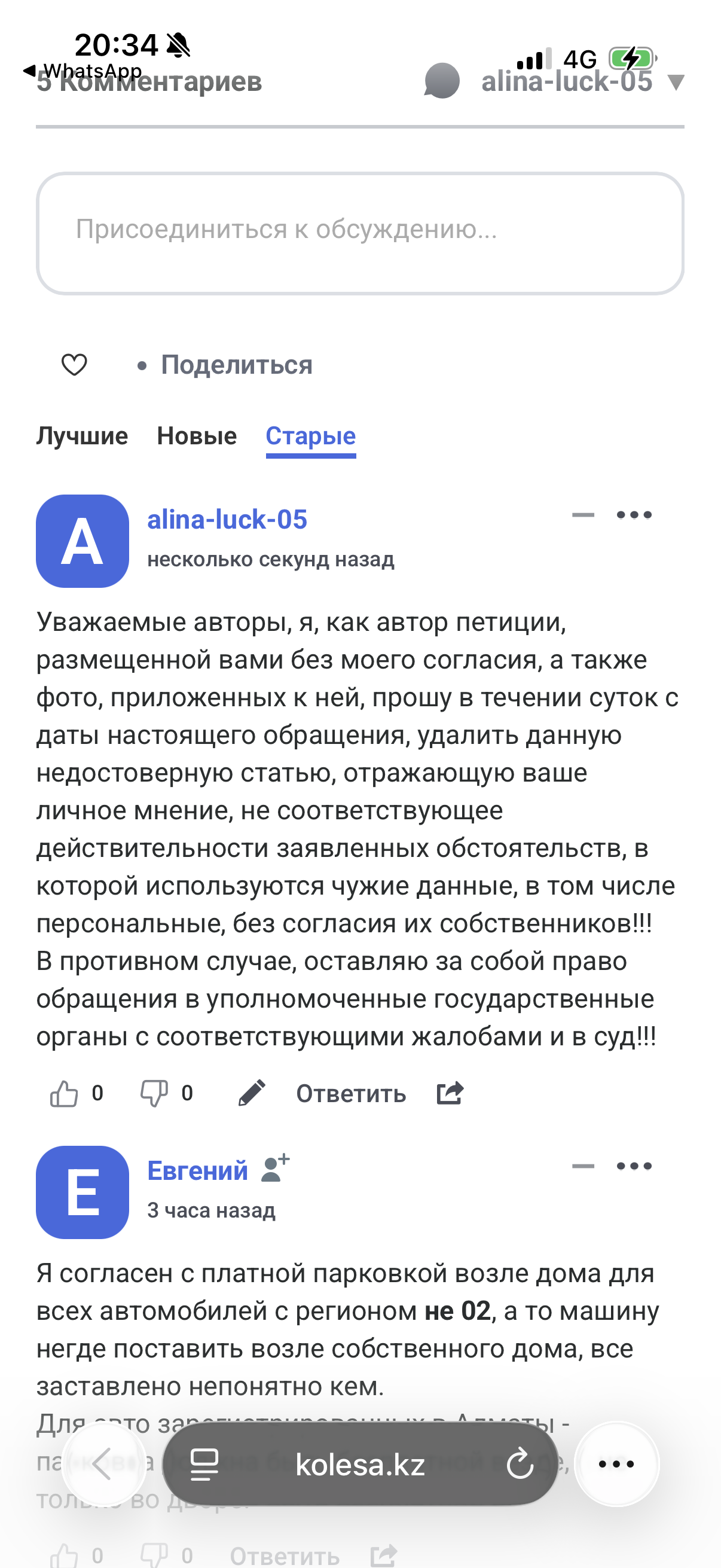 Для авто зарегистрированных в Алматы — парковка должна быть бесплатной везде, а не только во дворе.