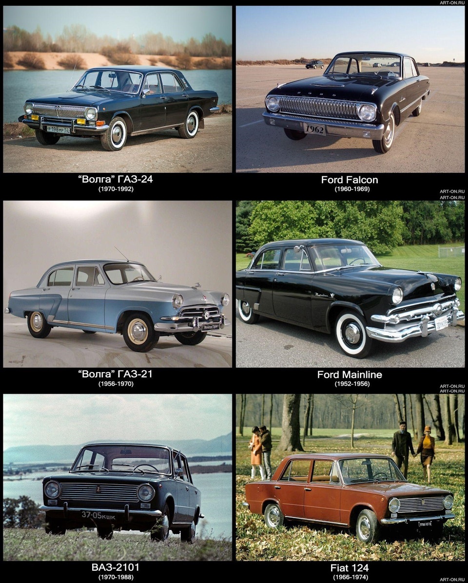 Ты сам-то вывезешь за "Брали готовые авто и просто шильдик меняли на "ВОЛГА"? Расскажи нам в каком месте у Газ-24 появилась рама как у Форда или откуда у Форда передняя независимая подвеска как на 24-ке? И поведай, когда на Фалконе появилась 4-х ступенчатая КПП как на Волге? С "копейкой" ситуация аналогичная.