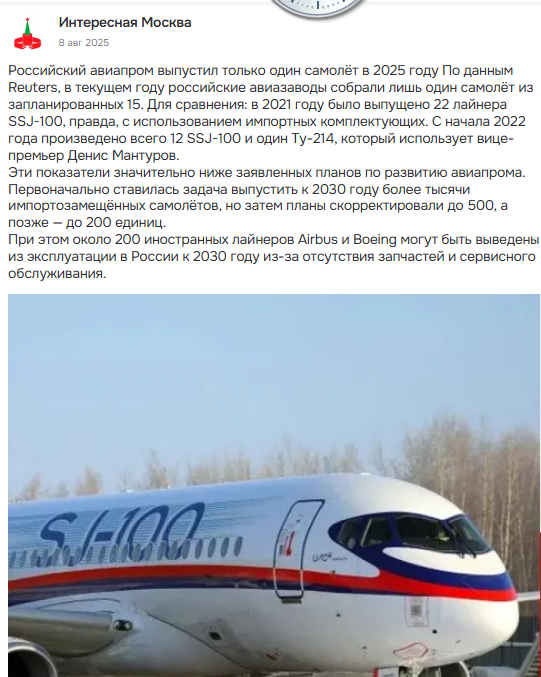 Он говорил об гражданской авиации. Информация такая читай! Ясен пень что военную технику они производят массами, у них же война, умник. https://uploads.disquscdn.com/images/a784eb24d794fbbbd0893517397ffc2777bebc87290d6eb6892aeda5f97d2bb0.png