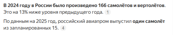 Хорошо,жду ссылку о выпущенных самолётах в России за 24/25 год.