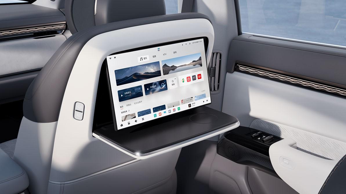 Ещё один экран на 13 дюймов встроен в спинку переднего пассажирского кресла и может откидываться. Правое заднее сиденье снабдили откидной оттоманкой. Отдельная сенсорная панель (снова в стиле Tesla) установлена с тыльной стороны центрального подлокотника и обеспечивает обитателям второго ряда возможность настраивать климат, музыку и тому подобное. Все посадочные места имеют подогрев и вентиляцию.
