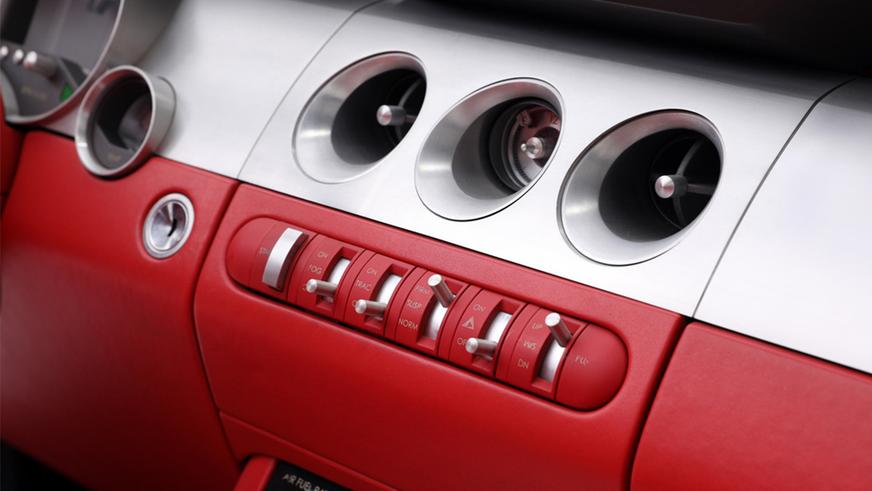 Салон концепта в общих чертах напоминает стоковое исполнение, но выглядит более примитивно-упрощённо, что не должно удивлять, поскольку интерьер спорткара тогда ещё пребывал в стадии разработки. В оформлении доминирует красная кожа и анодированный алюминий. Попутно можно отметить наличие укороченного лобового стекла, уникального капота с парой щелевидных воздухозаборников, фиксированной дуги безопасности и 20-дюймовых колёс с тормозами Brembo — в общем, всего того, что так и не нашло себе места в серийной версии.