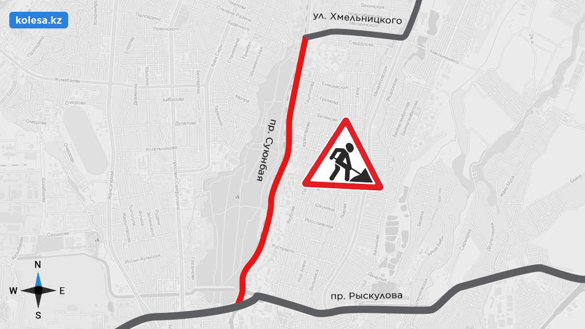 На участке от Рыскулова до Хмельницкого дорожники кладут асфальт.