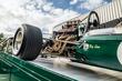Об автовозе, который прилагался к спорткару, известно меньше. Это грузовик Ford Thames Trader Transporter образца 1962 года, адаптированный для перевозки гоночного шасси. Он окрашен в те же фирменные цвета, что и болид, — зелёный British Racing Green с золотистыми акцентами — и имеет тот же бортовой номер в белом круге. «Автомобиль поддержки» также тщательно восстанавливали, причём обошлось это в 70 тысяч франков (более 37 млн тенге).