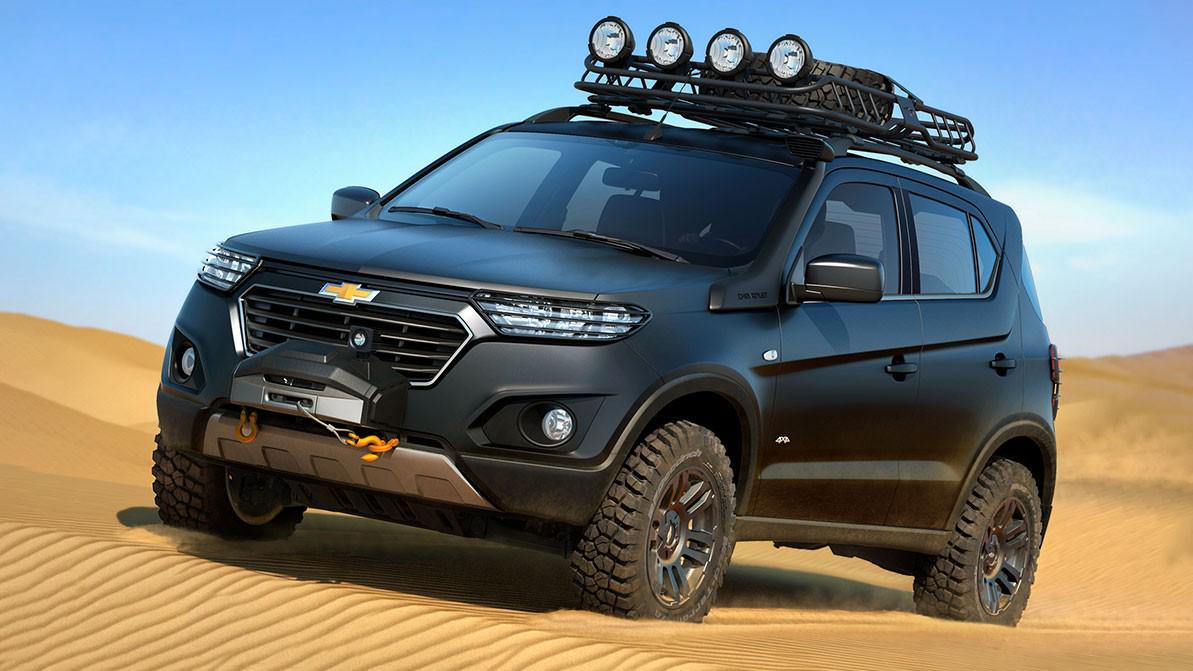 На фото хорошо видна альтернативная бамперная группа и другая решётка радиатора, изменённая светотехника и переосмысленная пятая дверь. Кроме того, Chevrolet Niva должна была лишиться пластикового обвеса, получив взамен более плавные обводы бортов. Тем самым экстерьер модели собирались приблизить к актуальной на тот момент стилистике американского бренда.