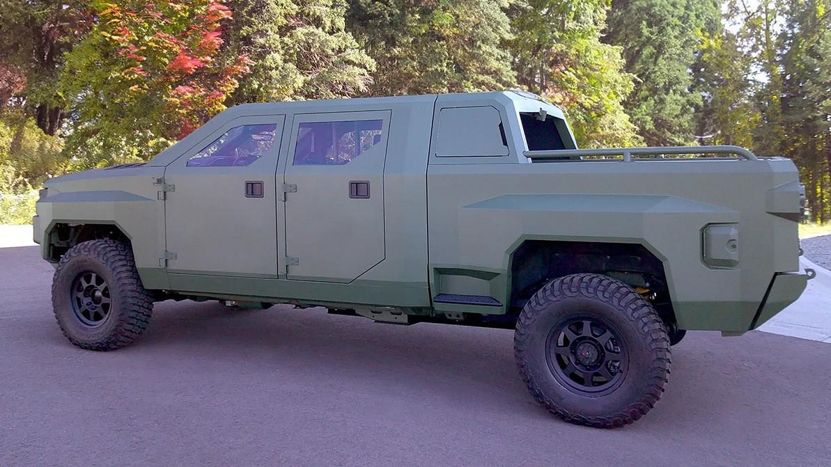 В основе тактического грузовичка Next Gen от GM лежит популярный среди фермеров и ранчеро Chevrolet Silverado 2500HD ZR2 с двойной кабиной, но уже в бронированном обвесе со стильной огранкой наружных плоскостей и практичной матово-зелёной окраской.