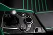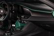Двухместный салон щедро откарбонен, обивка мягкой чёрной кожей с прострочкой и зелёными вставками отменно гармонирует с нестандартным цветом кузова Montreal Green GTAm. Приборная панель Cannocchiale представляет собой комбинацию электронных табло и аналоговых циферблатов, излишне современный сенсорный экран мультимедиа затонирован до состояния глухой черноты. Руль с кнопкой
