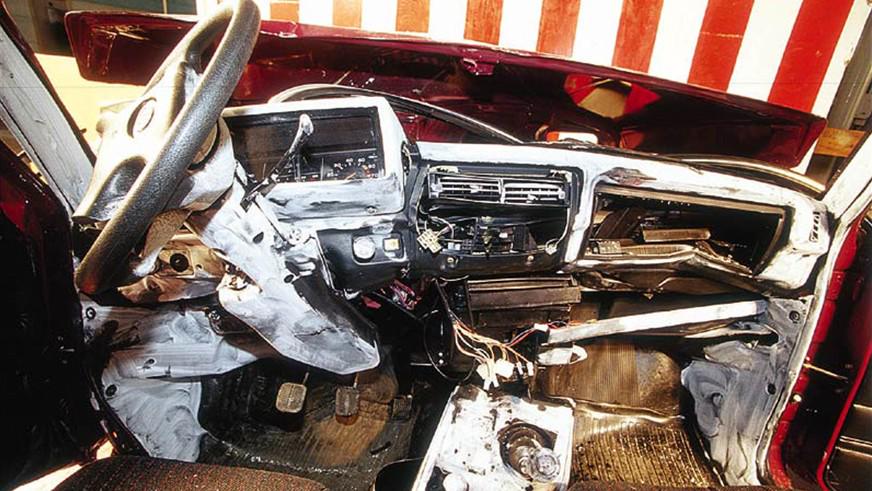 Другая составляющая плохого результата краш-теста — расположенное под капотом запасное колесо, которое не гасит энергию удара, а передаёт её на салон. В результате интерьер представляет собой ужасное месиво, в котором шансы на выживание крайне низкие.