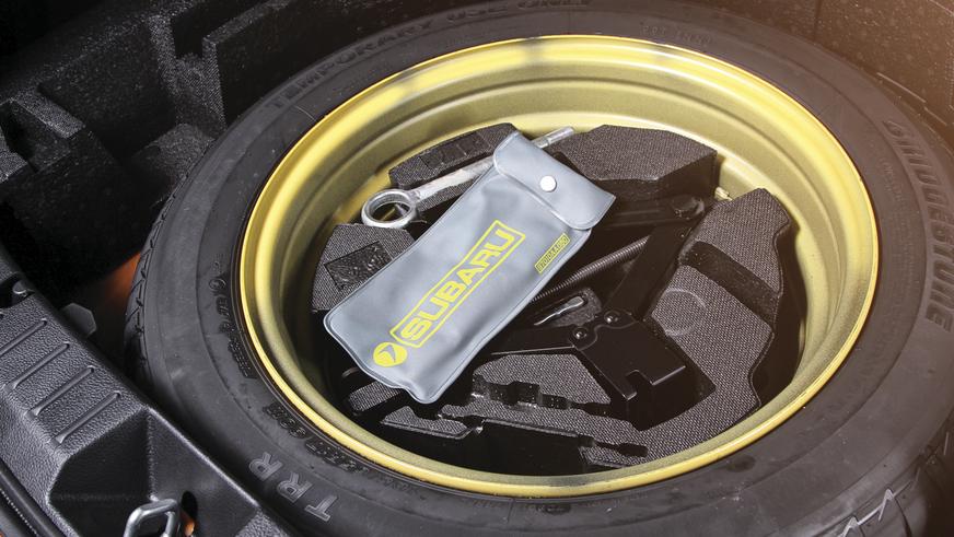 Багажники хэтчбеков гольф-класса (именно к таковым относится исходная модель Impreza) традиционно не славятся своим объёмом. В данном случае ситуация усугублена запаской размерностью 185/65 R17.